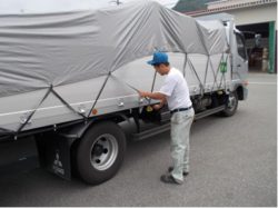 KY事例:トラックシート ゴムかけ作業 by原料課