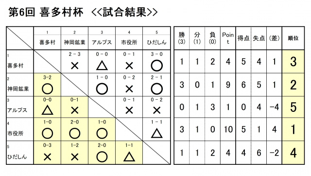 今年の優勝は飛騨市役所様でした!第1回大会以来の久々の参加でしたが3勝0敗1分で優勝されました。おめでとうございます!